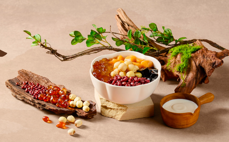 例如,在食材上,坚持“从田间到门店”的供应链路径,核心小料均采用门店现制;在装修上,门店设置客座区,木质装潢、园林元素,搭配暖色灯光,营造新中式氛围,整体视觉呈现比行业平均水平更好;在产品出品上,把产品的颜值和口感做到极致,让每个门店出餐稳定优于不少同行;在互动上,让消费者自己倒牛奶,增强参与感与仪式感;在外卖端,采用PP5材质外带碗,做到密封防漏,并鼓励消费者循环使用……